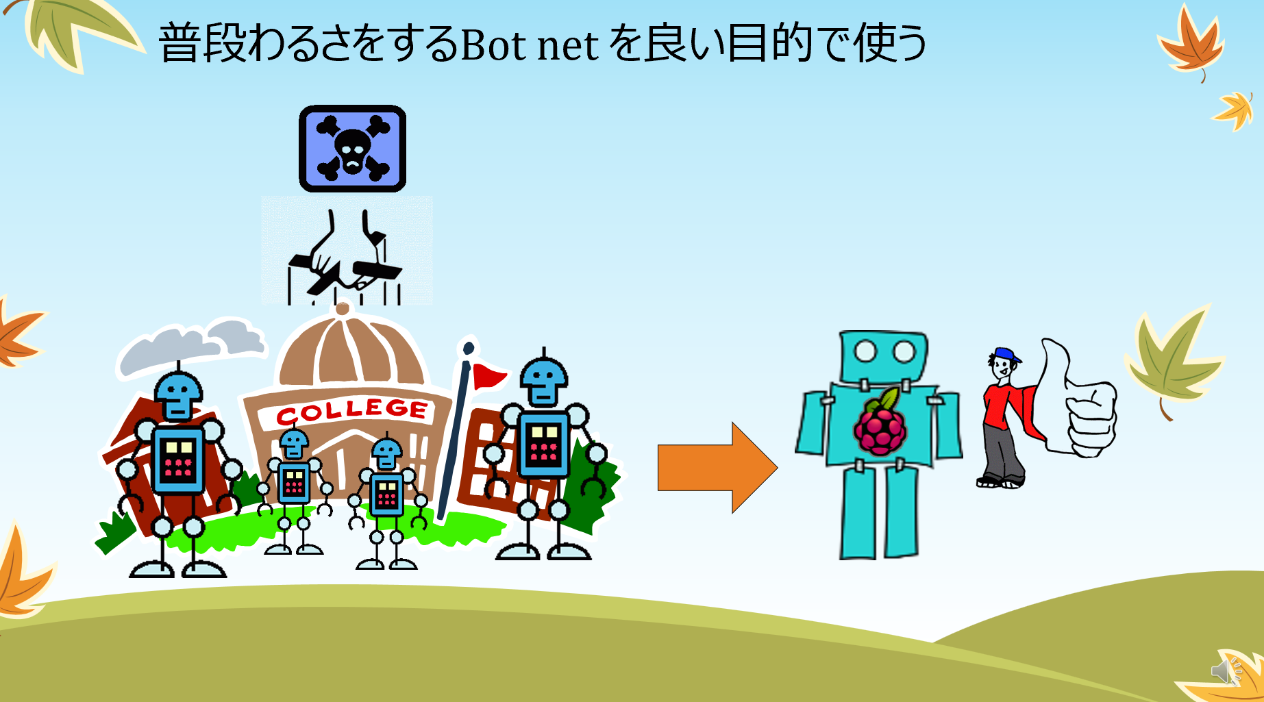 • https://www.slideshare.net/takashiyamanoue/a-botnet-detecting-infrastructure-using-a-beneficial-botnet