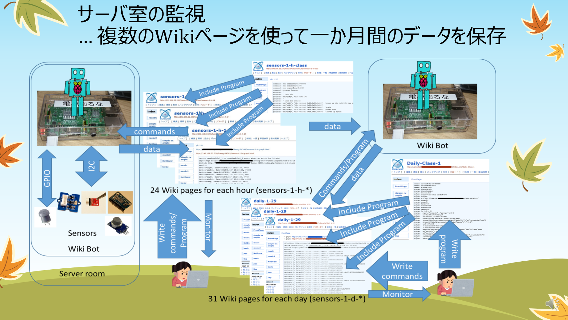 インターネット上のWikiページによりNAT背後のセンサ端末の設定変更や制御が可能なIoTシステムによるサーバとサーバ室の監視
