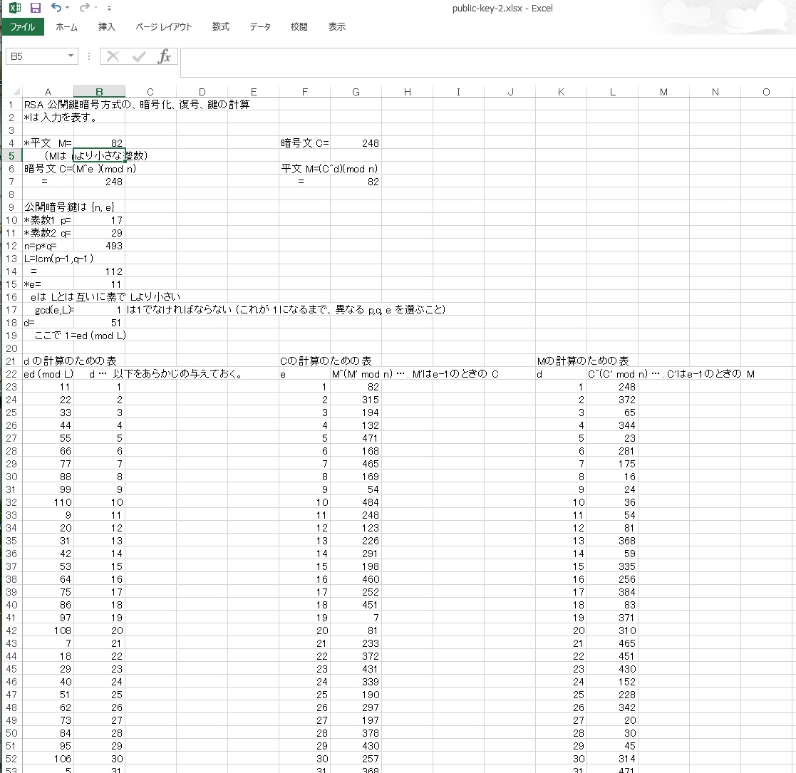 - RSA公開鍵暗号方式の計算を表計算で行います。