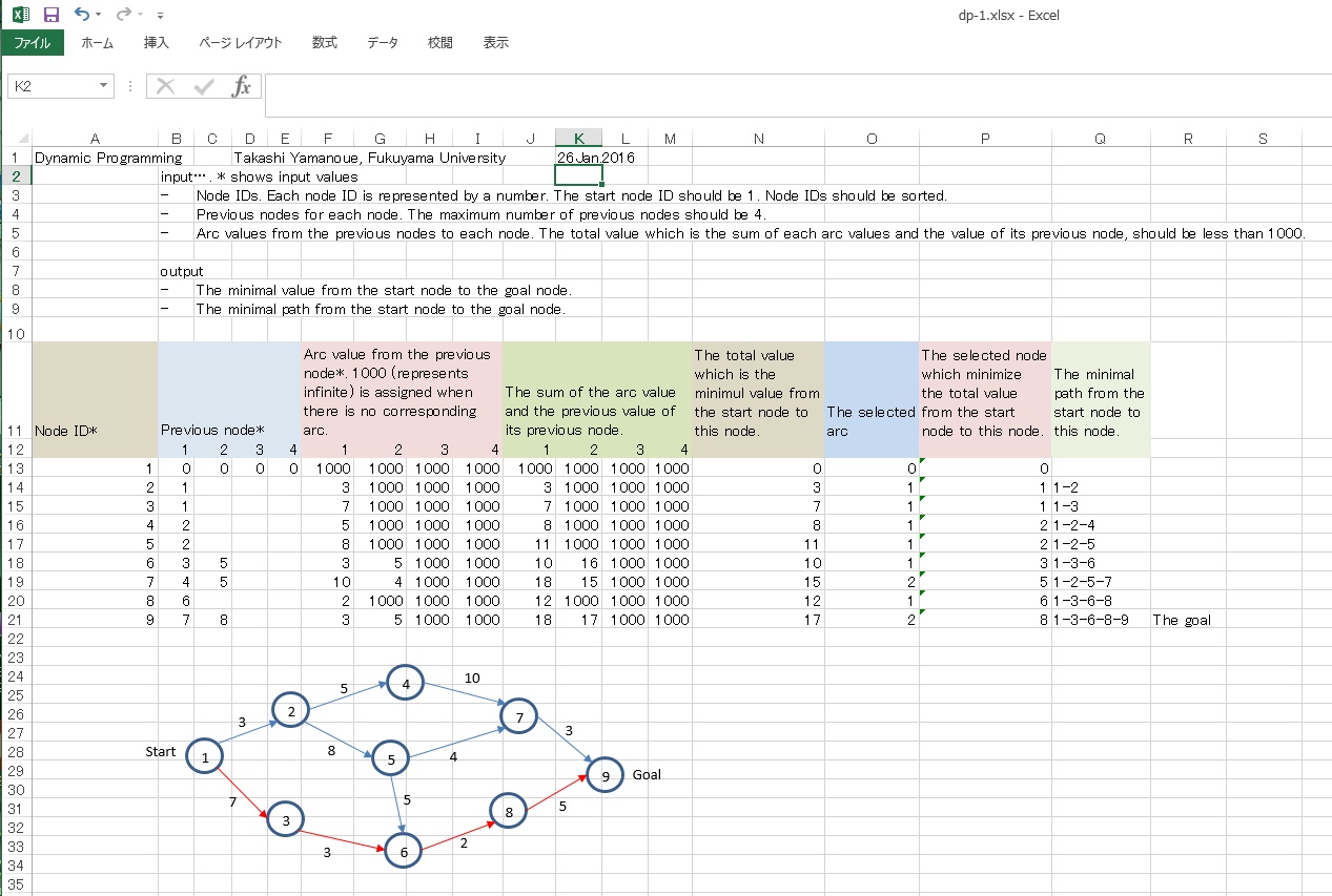 Dynamic Programming by Excel without using a VBA macro. †