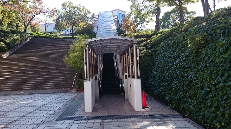 - At the up side of the escalator, the building No.27, the university hall is in front of there.