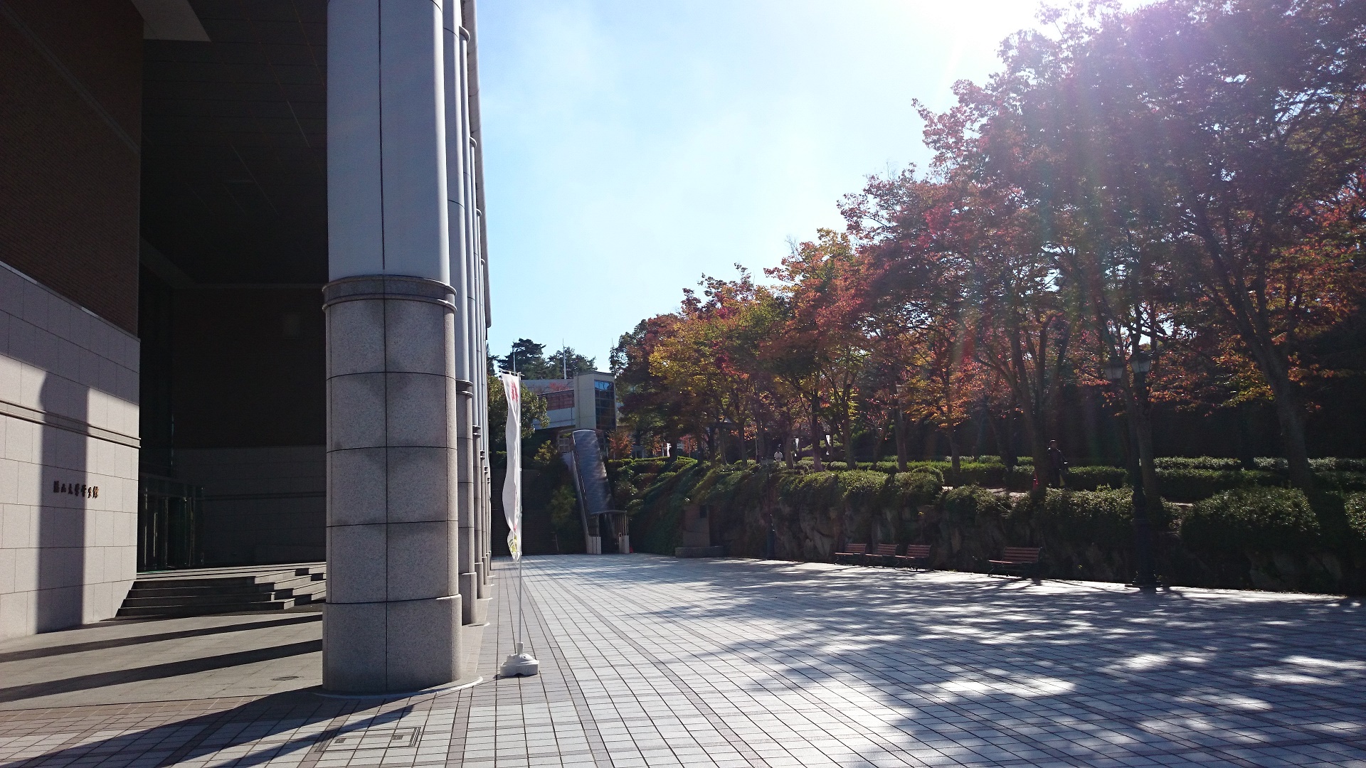 - You can see the entrance of the university hall at the left hand side while the walk.
